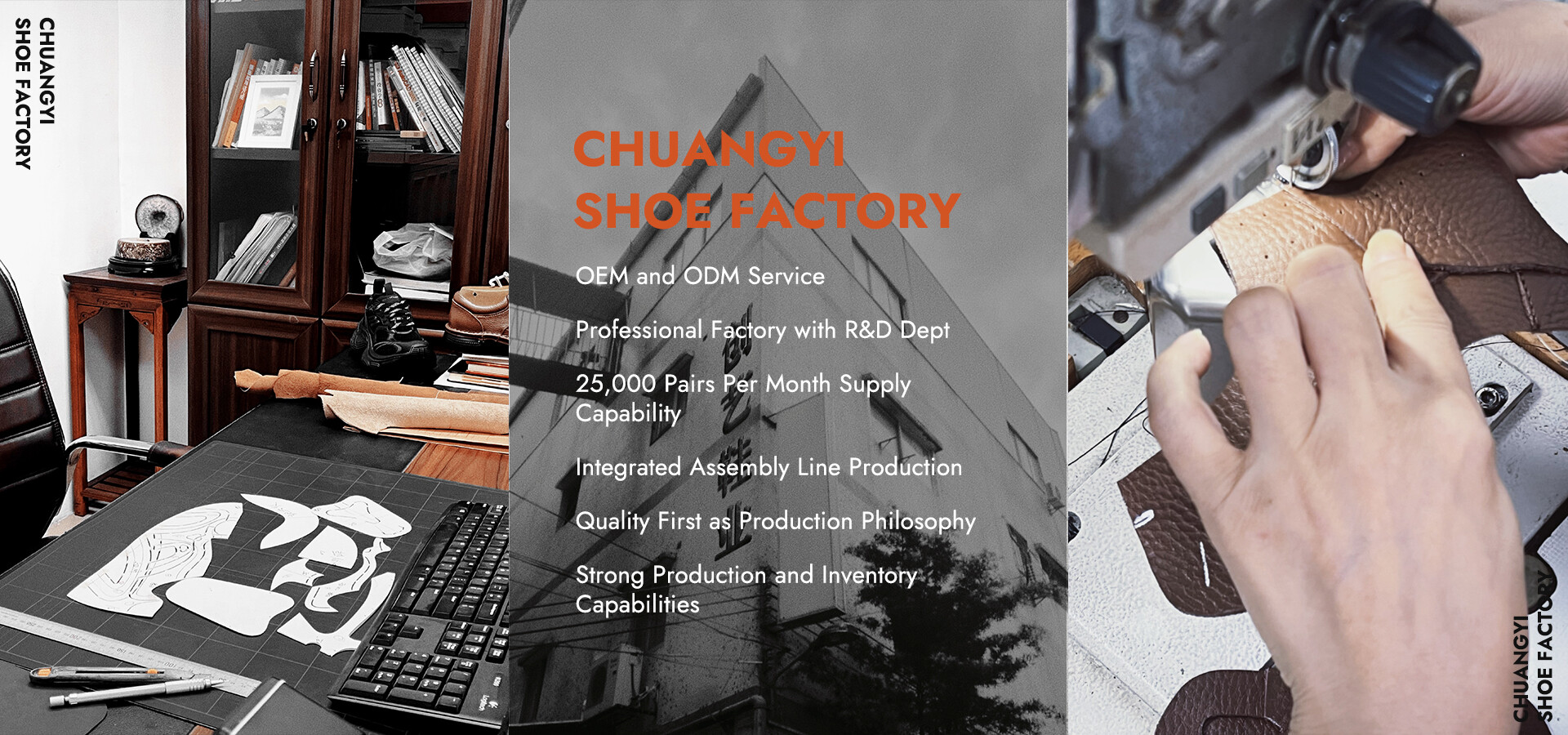 Chuangyi Shoes Co.,Ltd. is a shoe manufacturer integrating product design and development, OEM and ODM production, which is located in Guangzhou, China, one of the most active regions in the global footwear industry.
